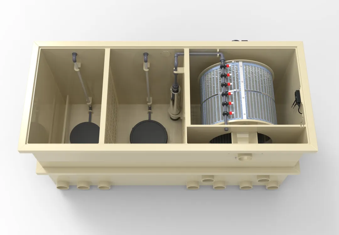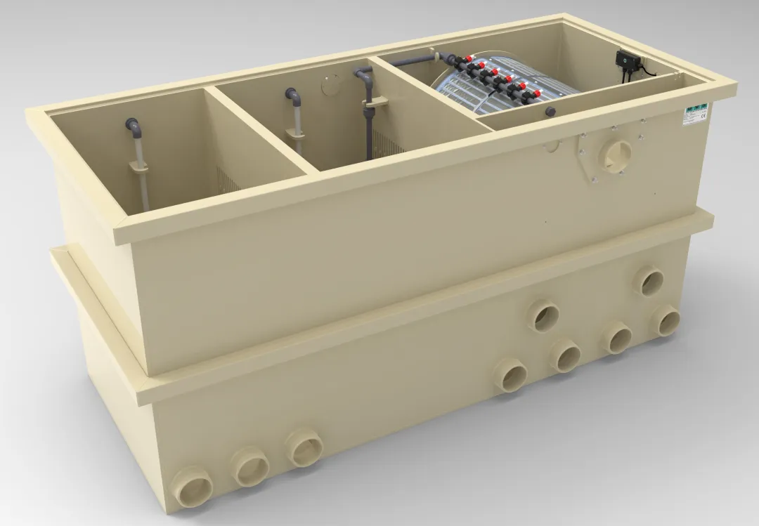 The C65-M provides both mechanical and biological filtration. Since this system is equipped with a mat chamber, the biological filter starts up quickly.