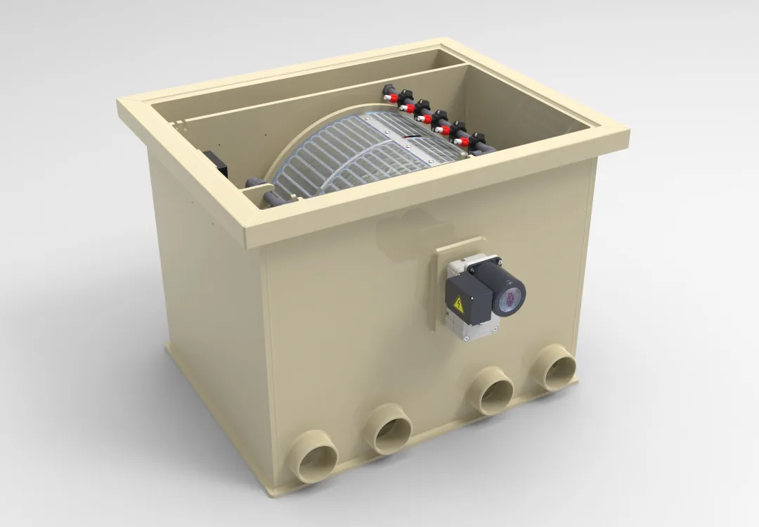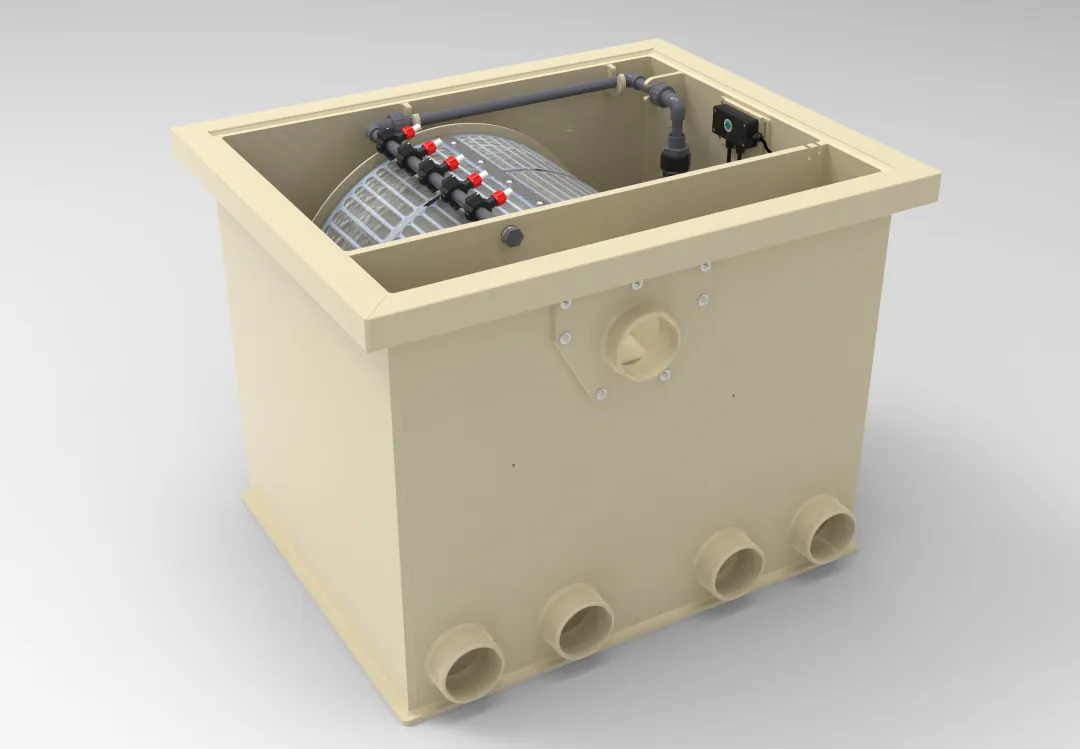 Omdat het filter standaard is voorzien van een krachtige interne spoelpomp is er geen externe spoelpomp nodig waardoor er een nette filterruimte ontstaat.